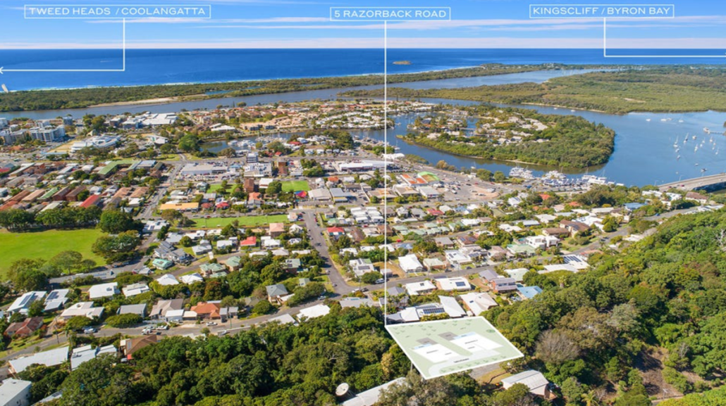 The 1,888 sq metre site has very impressive ocean and coastal views, across the Tweed River to Cook Island and further.
